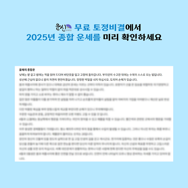 🌄2025년 토정비결 오픈🌄