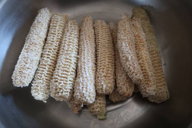 | ▲ 옥수수를 먹고 모아 놓은 속대 옥수수를 먹고 모아 놓은 속대 사진입니다 |