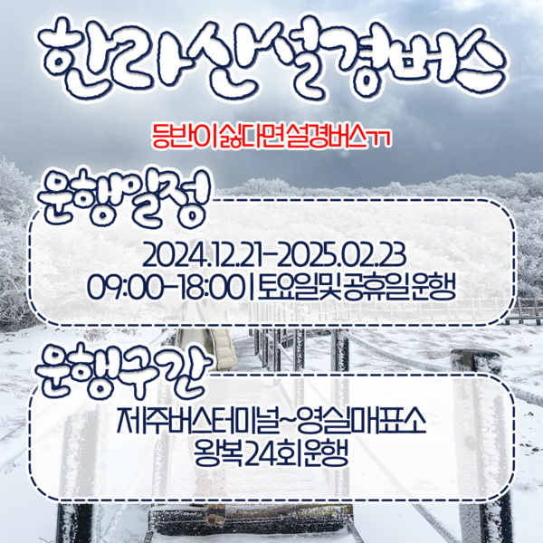 운행일정은 2024.12.21-2025.02.23까지 운행되며 오전 9시부터 오후 6시까지 토요일 및 공휴일 운행 예정입니다.
