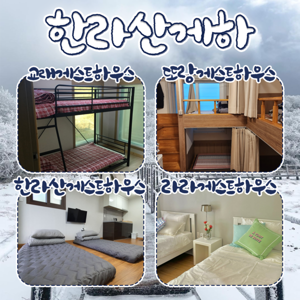 이 때 잠만 자는 경우 저렴한 게스트하우스를 추천드립니다. 한라산 인근 게하로는교래 게스트하우스(제주 제주시 조천읍 비자림로 685-14 2층), 또랑 게스트하우스(제주 제주시 한북로 33), 한라산 게스트하우스(제주 제주시 제주대학로 77), 라라게스트하우스(제주 제주시 조천읍 교래4길 74 2층, 3층)이 있으니 참고 하시길 바랍니다.