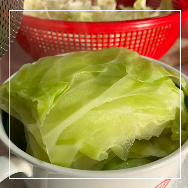 양배추를 한 장씩 떼어내어 깨끗이 씻은 뒤, 찜기에 5분 정도만 살짝 쪄주세요.