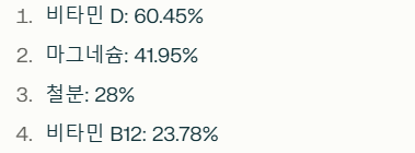 이 연구에서 밝혀진 주요 결핍 영양소와 그 비율은 다음과 같습니다.