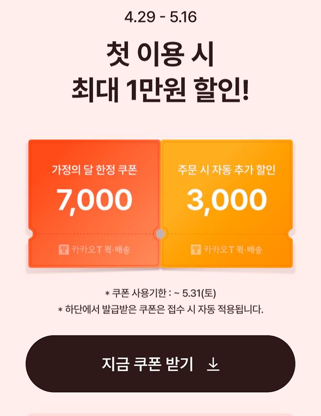 첫 이용자라면 쿠폰 자동 적용 가능! (최대 4만원 릴레이 할인)