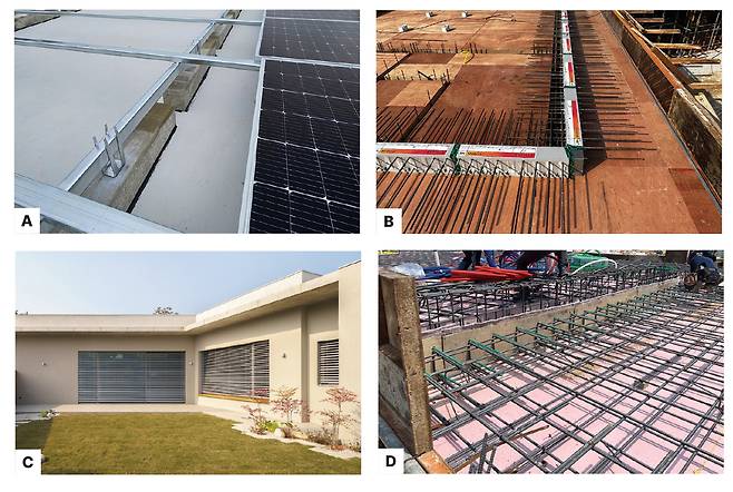 D 금속재인 철근은 열 전달이 빨라 열교의 원인이 될 수 있다. FRP 소재가 적용된 철근은 기초 이음부의 열교를 저감시킬 수 있다.