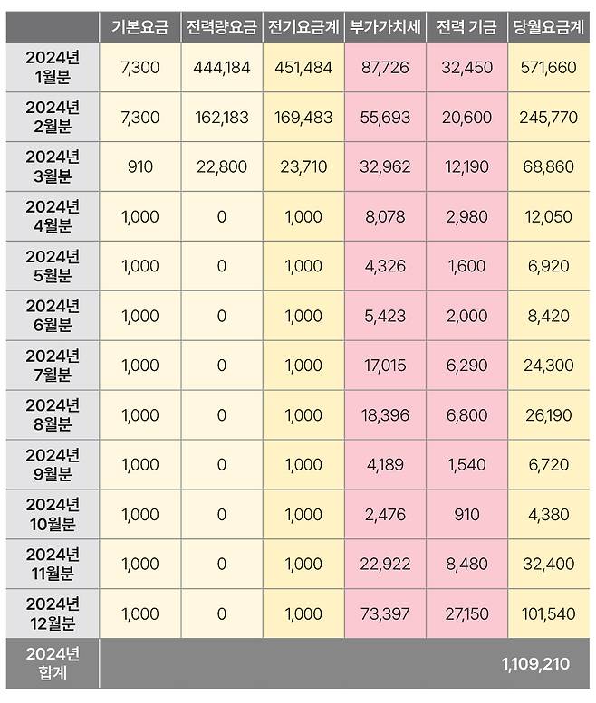 삼교동 주택의 월별 주택용 전기 요금 예상치 (9.5㎾ 설비 전체 상계거래 경우. 단위 :원)