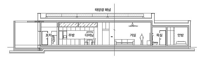 A 평지붕 슬래브 위에는 9kW용량 태양광 패널을 설치했다. 이때 패널 구조재는 열교와 누수를 피하기 위해 구조에 타공 없이 설치를 진행했다.