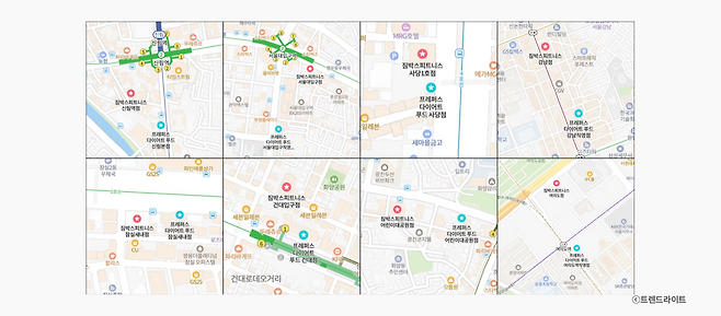 ‘헬스장 옆 샐러드집’의 장점은 여기서 끝이 아닙니다. 출점 순서를 보면, 프레퍼스가 먼저 다양한 수도권 지역에 가맹점으로 진출하고, 이후 짐박스가 직영점으로 들어오는 경우가 많습니다. 프레퍼스로 건강 식단 수요를 테스트한 뒤, 수요가 검증되면 짐박스를 출점하는 방식인 건데요.