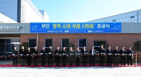 한국재료연구원(KIMS, 원장 최철진) 풍력핵심기술연구센터(센터장 박지상 책임연구원)가 12월 17일 전라북도 부안군 신재생에너지단지에서 ‘풍력 소재·부품 시험동 준공식’을 개최했다.