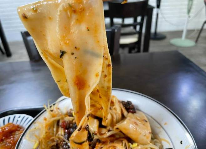 부산에 자리한 수공미식은 네이버 평점 4.79로 이미 많은 이들이 인정한 아시아 음식점이다. 대표 메뉴는 면 한 가닥의 길이가 5~6m에 달하는 부산면, 납작한 희모카와 우동이 있다. 하지면 새로운 면을 맛보고 싶다면 비앙비앙면을 추천한다. 5~6m에 달하는 널찍한 장수 우동면에 양배추, 김 가루, 양파, 당근을 채 썰어 넣고, 간장 소스와 버무려 먹는다. 매운 걸 좋아한다면 매운 양념장과 고추를 추가하면 된다. 떡처럼 쫄깃한 식감과 시원한 음식에 불향이 느껴지는 독특한 미식의 세계를 경험할 수 있다.