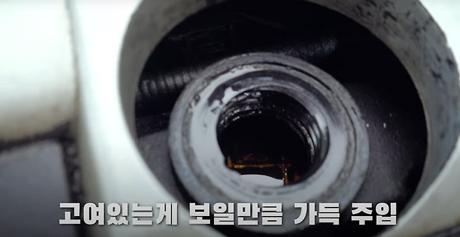 엔진오일 체크 바 상에 F 선을 한참 넘도록 기존 잔량에서 4L 순정 엔진오일을 가득 주입하였습니다. 엔진오일 캡을 열었을 때 고여있는 게 보일 정도로 가득 주입을 한 상태에서 과연 주행 시 어떤 증상이 발생하는지 알아보았습니다.