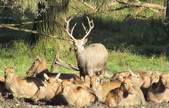 여러 암컷 사슴들과