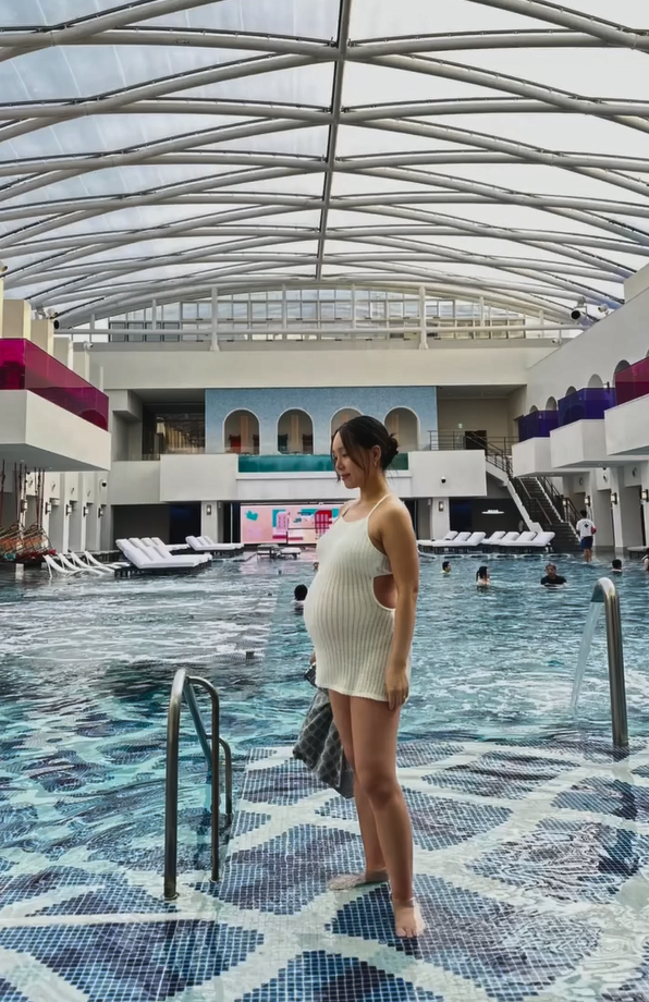 그녀의 시간은 이제 가장 고요하고 아름다운 리듬으로 흐릅니다. 37주 차, 출산을 코앞에 둔 그녀의 D라인은 그 어떤 무대 의상보다 위대하고 경이롭습니다.