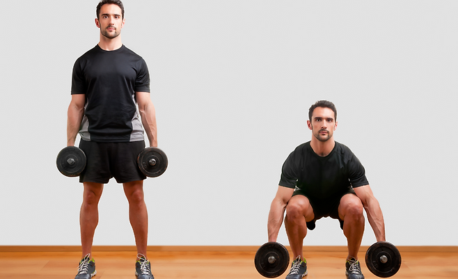 덤벨 스러스터: 스쿼트와 숄더 프레스를 결합한 운동으로, 전신의 주요 근육을 사용하여 높은 칼로리 소모 효과를 얻을 수 있다.