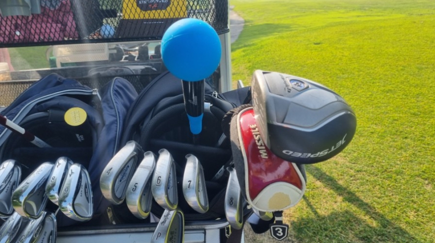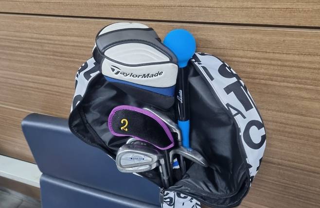 집에서 연습하던 스윙연습기로 필드에서도 사용했어요.