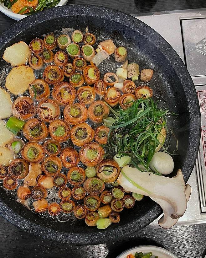 특별한 파곱창을 맛 볼 수 있는 화성 '구들짱황소곱창'. 파곱창이라는 메뉴가 따로 있지는 않지만 파모듬구이라는 메뉴에서 파곱창을 맛 볼 수 있다. 그냥 먹어도 맛있는 곱창에 파를 꽂아 만드는 파곱창은 비주얼만으로도 놀랍다. 곱창의 곱이 녹아든 파는 고소한 곱의 맛에 파의 식감까지 더해져 놀라운 맛을 자랑한다. 채소와 과일이 들어가 초록빛을 내는 대창도 이 집의 인기메뉴. 씹을때마다 입 안에 가득 차는 고소한 기름과 부드러운 식감으로 입 안 가득 대창의 풍미를 느낄 수 있다.
