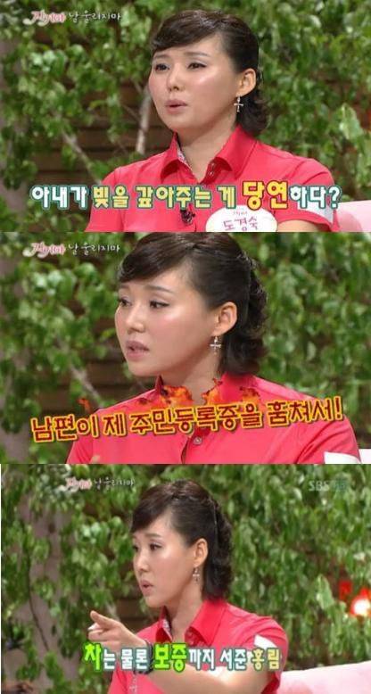 이어 도경숙은 “알고 보니 남편은 나 몰래 내 주민등록증을 훔쳐서 차를 구매했고, 이를 지인에게 선물했다”라고 말해 출연진을 충격에 빠뜨렸습니다. 도경숙의 폭로에 최홍림은 “엔터테인먼트 사업을 하는 동생에게 차를 사준 것인데, 차를 사주면 나를 방송에 꽂아주겠다고 해서 그렇게 했던 것이다”라며 “남편의 빚은 아내가 갚아 주는 것이 당연한 것 아니냐”라고 반문했습니다.