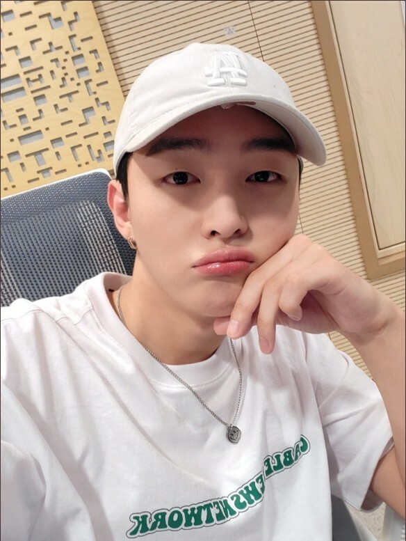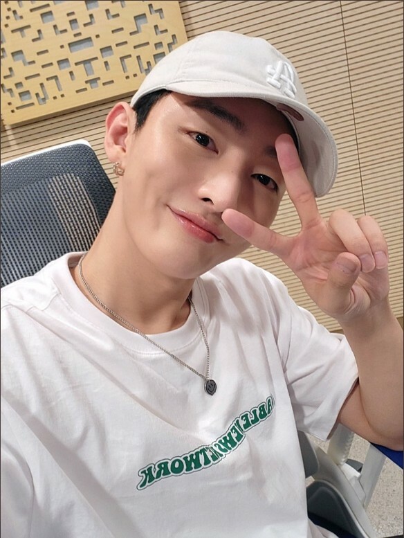 윤지성도 화이트 컬러의 시원한 반팔을 매치했네요.