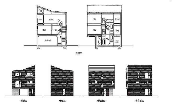 건축주 부부는 설계 계획을 세울 때 민원을 고려해 1층은 철근콘크리트 구조로 하고 2, 3층은 중목구조의 프리컷 공법을 활용하고자 했다. 하지만 설계 당시만 해도 본 주택처럼 주택가에서 중목구조 프리컷 공법을 활용하는 집과 시공사는 그리 많지 않았다.