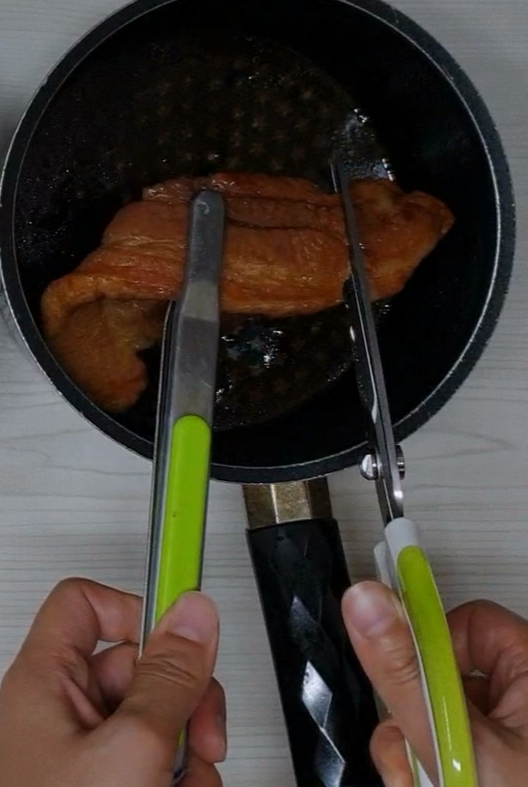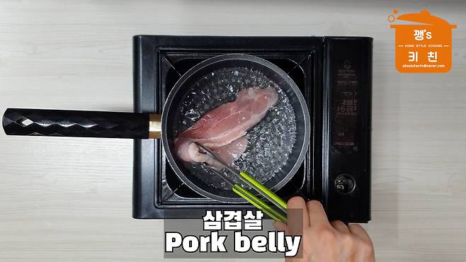끓는 물에 삼겹살 1줄을 넣어주세요