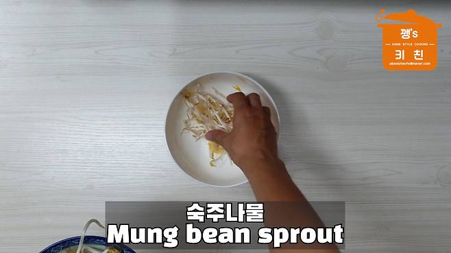 깨끗이 씻은 숙주를 한 줌 담아줍니다