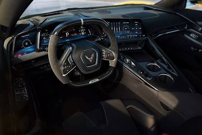 스팅레이부터 ZR1까지 전 라인업에 적용되는 이번 인테리어 개선은 12.7인치 인포테인먼트 디스플레이, 14인치 디지털 계기판, 스티어링 휠 좌측의 6.6인치 터치스크린으로 구성된 3중 디스플레이 시스템이 특징이다. 무선 충전 패드가 터치스크린 아래에 자리 잡았으며, 볼륨 노브는 더 커지고 조명이 추가되어 야간 사용성이 향상됐다.