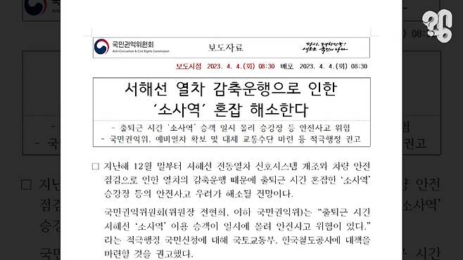 이 영상을 보라. 7월 1일 대곡~소사 구간이 개통한 지하철 서해선의 모습인데 서해철도주식회사 홈페이지엔 '출근 시간에 25분 기다렸다' ‘감사합니다 ^^ 월요일부터 지각이네요’와 같은 민원이 올라오는가 하면 직장인 커뮤니티에도 ‘요새 하루도 안 빠지고 지연된다’는 글이 올라왔다. 유튜브 댓글로 “서해선은 왜 연착이 많은 건지 알아봐달라”는 의뢰가 들어와 취재했다.