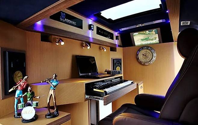 박진영은 이 차량을 커스텀 전문 디자이너 장종수 대표에게 직접 의뢰했다. 일반 리무진이 아닌, 작곡 전용 공간으로 개조된 스타렉스는 내부 전체가 흡음재로 덮여 있고, 고가의 키보드, 오디오 인터페이스, 믹서, 그리고 모니터 시스템이 정교하게 설치되어 있었다.