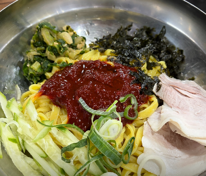 ▶ 비빔칼국수맵지 않으면서 감칠맛 높은 독특한 양념 소스가 매력적입니다.