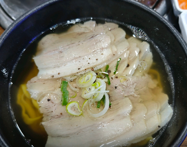 ▶ 한돈으로 끓여낸 맑고 깔끔한 돼지곰탕 육수