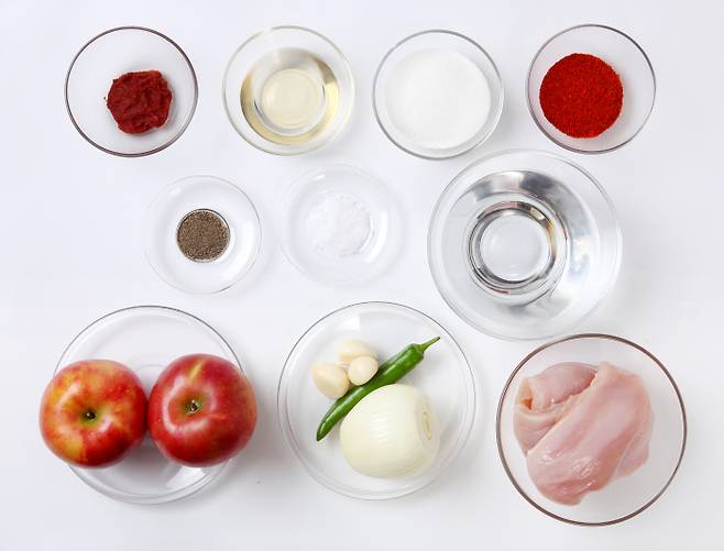 주재료 : 닭고기(가슴살) 500g, 사과 2개