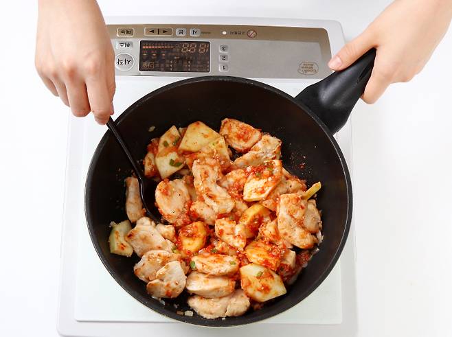‘사과 닭고기 조림’은 닭고기 가슴살을 사과소스에 넣고 조리는 메뉴인데요. 사과와 고추장, 다진 마늘, 호추 등을 넣고 천연 소스를 만들면 닭고기와 맛이 잘 어우러집니다. 아이들도 맛있게 먹을 수 있으나 매운 음식을 못 먹는 아이라면 고추장 대신 간장을 사용해도 좋습니다.