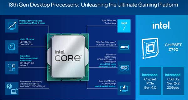 12세대 및 13세대 인텔 코어 프로세서를 지원하는 인텔 Z790 칩셋은 기존 Z690과 비교해 PCIe 4.0 레인 구성이 8개 더 늘어나고, USB 3.2 포트 지원도 5개로 증가했다. 또한 내장 그래픽 동시 출력이 가능한 그래픽 포트 숫자도 4개로 늘렸다. 여기에 메인보드 차원에서 더 많아진 코어와 높아진 클럭, 증가된 소비 전력, 향상된 DDR5 오버클럭 메모리 지원 등 랩터 레이크에 최적화된 설계가 들어간다.