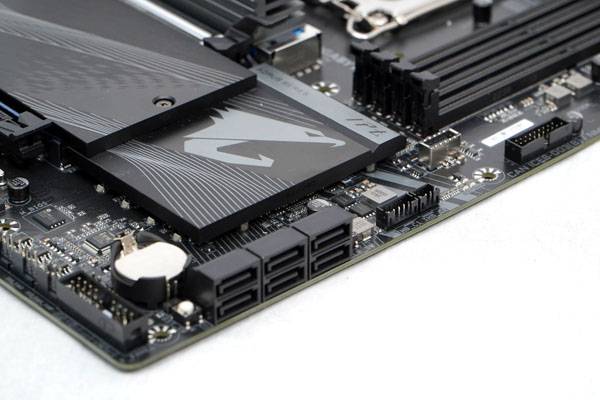 SATA 커넥터 외에도 기가바이트 썬더볼트(Thunderbolt) 애드 인 카드를 연결하는데 사용하는 THB_C1 및 THB_C2 커넥터와 케이스 전면 또는 3.5인치 전면 패널 등에 연결하는 USB 3.2 Gen2 Type-C 헤더 및 USB 3.2 Gen1 2포트 헤더 등도 배치되어 있다.