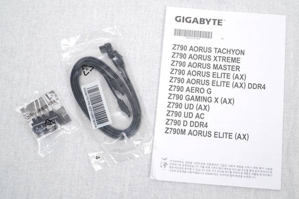 기가바이트 Z790 어로스 엘리트 제이씨현 구성품으로는 메인보드와 사용자 설명서, SATA 케이블 2개, G 커넥터 1개가 포함되며 상세한 한국어 매뉴얼이나 드라이버, 유틸리티 등은 기가바이트 홈페이지에서 다운로드 받을 수 있다. 기가바이트 국내 공식 수입사인 제이씨현으로부터 3년 무상 보증 서비스를 제공한다.
