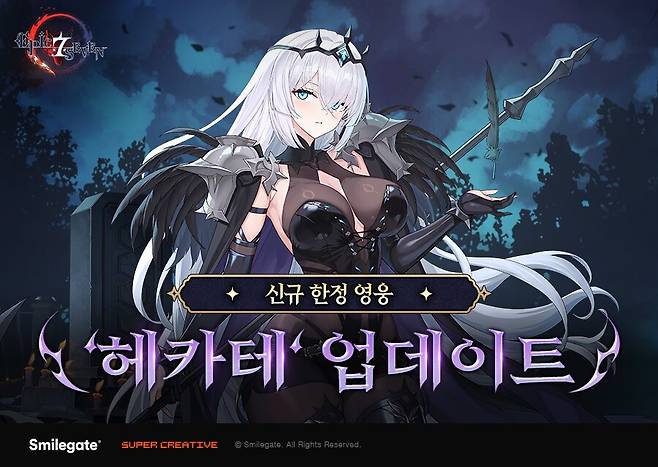 헤카테는 5성 등급의 자연속성 전사 영웅이다. 2스킬 '죽음의 권위'의 효과로 적과 아군 모든 영웅이 ‘불사’와 ‘부활’을 발생시키지 못하게 하고 방어력을 관통하는 강력한 단일 공격으로 적을 마무리할 수 있는 것이 특징이다. 3번째 스킬인 ‘피할 수 없는 죽음’은 자신에게 3턴간 공격력 증가 효과를 부여하고 적 영웅의 ‘피해 분배’ 효과를 무시해 높은 피해를 입히는데, 추후 추가되는 신규 장비 세트 ‘개전의 세트’와 연계하면 더욱 효과적으로 활용할 수 있다.