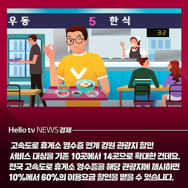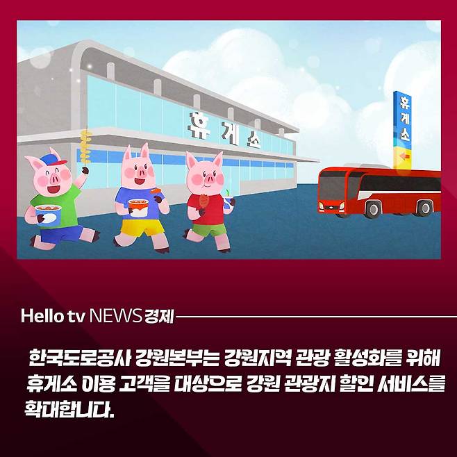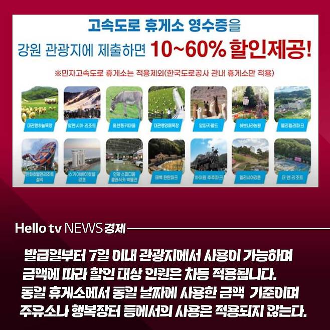 한국도로공사 강원본부는 강원지역 관광 활성화를 위해 휴게소 이용 고객을 대상으로 강원 관광지 할인 서비스를 확대합니다.