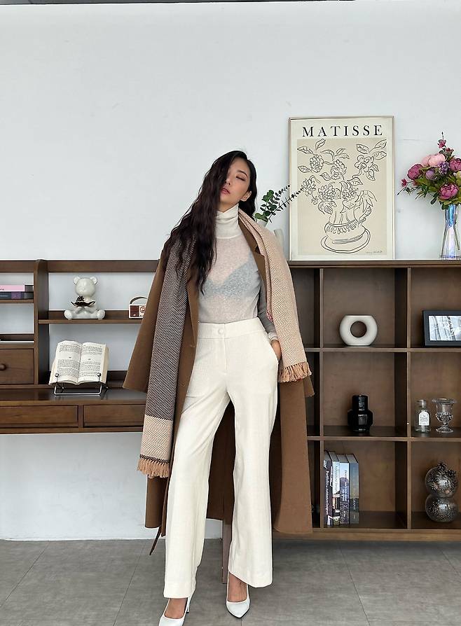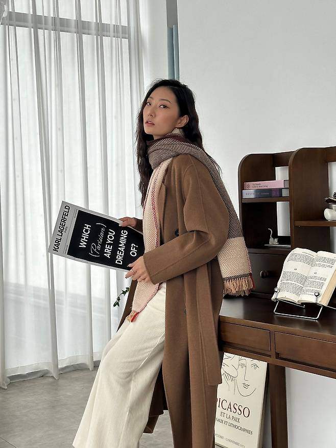 지지안은 캐시미어 롱코트의 이너로