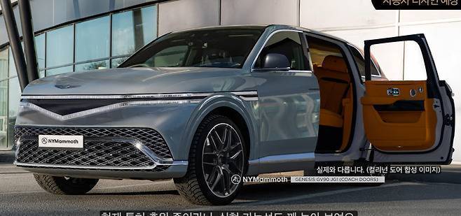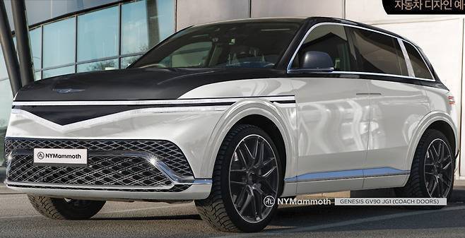 GV90은 GV80보다 더 큰 차체를 기반으로 7인승 구조와 넓은 실내를 제공한다. 외관 디자인은 2024 뉴욕 오토쇼에서 공개된 네올룬(Neolun) 콘셉트에서 영감을 받아, 부드러운 곡선과 간결한 표면을 강조한다. 특히 고급 트림에는 B필러가 없는 코치 도어가 적용될 가능성이 높아, 세단급 승하차 편의성과 독창적인 럭셔리 감성을 동시에 전달할 전망이다.