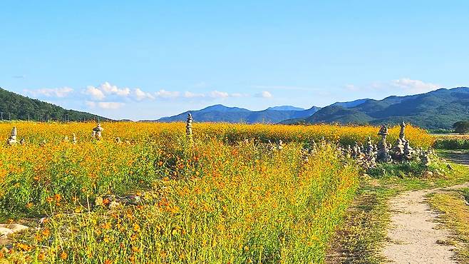 특히 해 질 녘, 서쪽 햇살이 코스모스 위로 쏟아질 때의 풍경은 ‘황금빛 바다’라는 표현이 아깝지 않다.