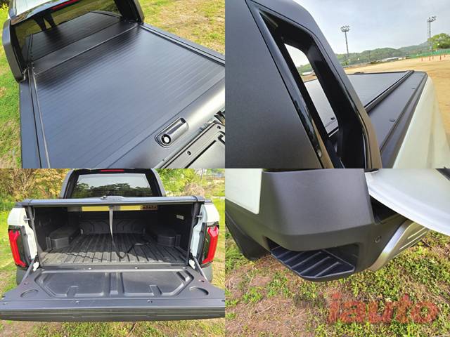 사이드는 승용차와 트럭의 경계를 낮춰 일상과 아웃도어를 아우르는 균형감을 표현했다. 전면부터 후면까지 이어지는 캐릭터 라인은 역동성을 더하며, C필러 가니쉬는 그립감이 좋은 도구를 연상시키는 독창성으로 유니크함을 강조했다. 공구를 형상화한 LED 리어 콤비네이션 램프는 강렬한 디자인 정체성을 구현하며, 데크 상단 프로텍터와 사이드 스텝을 적용해 실용성을 높였다. 날렵하고 스타일리시한 스포일러 중앙에는 하이마운트 스톱 램프를 적용해 후방 시인성을 높였다.