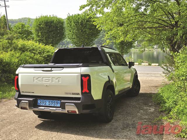 사진=더아이오토/KGM 무쏘 EV는 당당한 리어 스타일을 갖추고 있다
