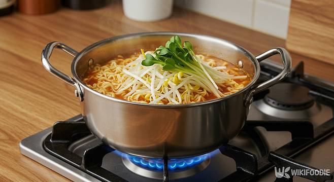 애호박을 넣으면 국물이 시원하고 깔끔해진다. 수분이 많아 국물 맛을 부드럽게 만들고, 칼륨이 풍부해 짠맛을 중화시키는 효과도 있다. 2~3분 정도 끓여주면 적당히 익으면서 라면과 잘 어우러진다.