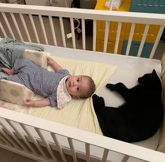 아무래도 고양이 입장에서는 아기가 소중할 수밖에 없다고 합니다. 그도 그럴 것이 엄마 집사가 임신했을 때 늘 항상 아기랑 교감이라도 하려는 듯 엄마 배에 자주 누웠다는 것.