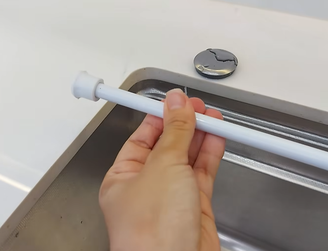 주방 싱크대 위, 또는 창가 아래쪽에 텐션로드를 설치한 뒤 걸레, 수세미, 청소용품을 널어줍니다. 좁은 공간에도 설치가 쉽고, 길이 조절이 가능해 원하는 위치에 맞춰 위생적으로 관리할 수 있습니다.