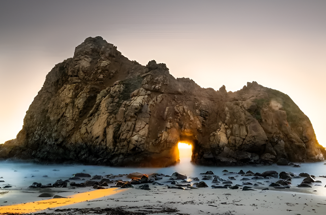 캘리포니아의 빅서(Big Sur) 해안선에 숨은 파이퍼 비치(Pfeiffer Beach)는 그 상상을 현실로 만들어주는, 지구 위의 경이로운 여행지입니다.