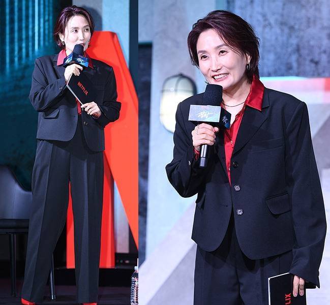 박경림은 또 한 번 ‘행사 장인’의 클래스를 입증했습니다. 넷플릭스 시리즈 ‘광장’ 제작발표회에서 MC로 참석한 박경림은 ‘이 자리가 왜 박경림이어야 하는지’ 존재감 하나로 증명해 냈습니다. 이날 박경림은 클래식한 블랙 테일러드슈트에 강렬한 레드 셔츠를 매치해 시선을 사로잡았습니다.
