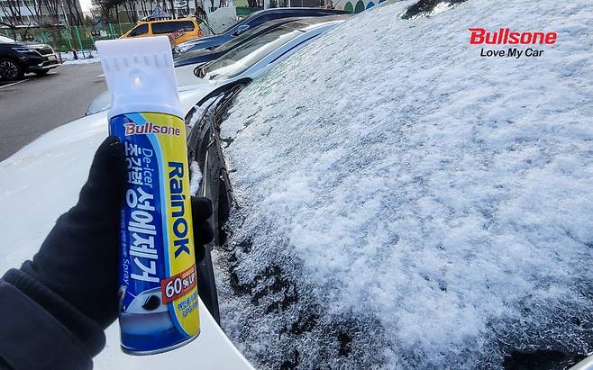 불스원의 레인OK 성에제거제는 유리창 손상 없이 편리하게 분사해 성에를 제거할 수 있는 제품이다. 폭발 위험성을 가진 가연성 고압가스(LPG) 대신 안전한 에탄올 원료 기반의 이산화탄소 충전방식으로 겨울철 저온에서도 뛰어난 분사력을 자랑한다.