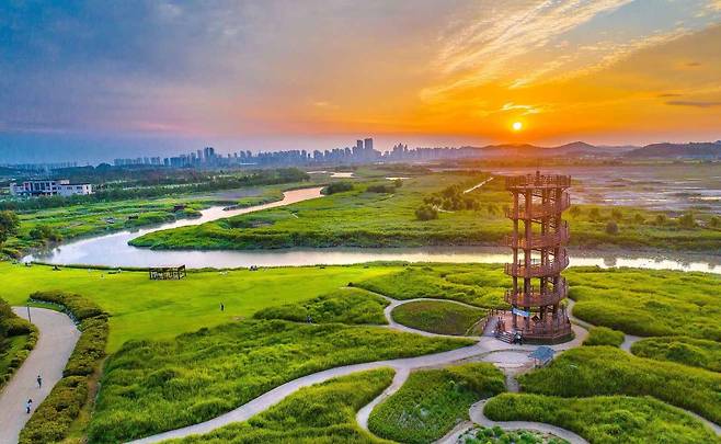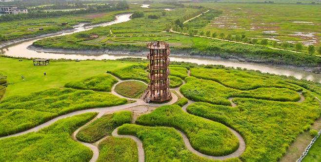 경기 시흥시 장곡동, 갯골생태공원 안에 자리한 흔들전망대는 공원을 대표하는 랜드마크로 꼽힌다.
