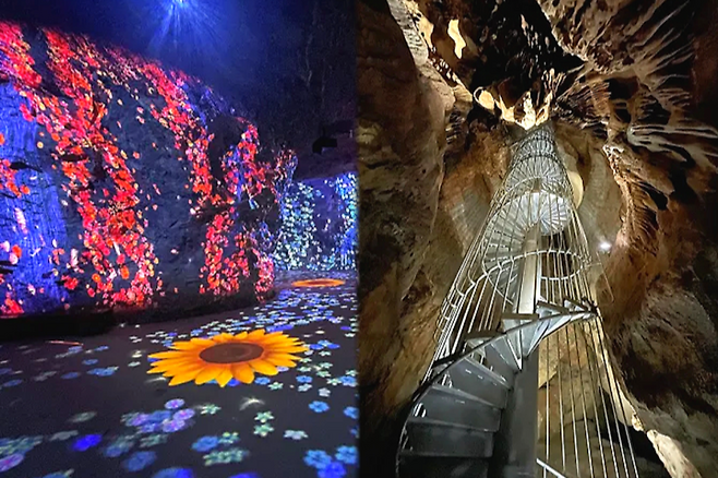 동굴 안은 단순한 탐방로가 아니라 하나의 전시 공간처럼 구성돼 있습니다. 미디어 아트, 빛 터널, 동굴 예술의 전당까지 이어지며, 걸음을 옮길 때마다 분위기가 바뀝니다. 아이와 함께 가도, 연인과 가도 모두 만족도가 높은 곳이라는 점이 가장 큰 장점입니다.
