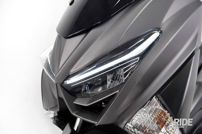디자인부터 둘러보면 일단 외관은 그리 특별하지는 않다. 이런 스타일이 워낙에 많기 때문인데 전체적으로 최근 125cc 스쿠터가 지향하는 스타일로 대중적으로 무난한 디자인이다. 약간 스포티한 느낌도 나고 프론트 부분은 카울의 형상이 다소 입체적인 느낌도 든다. 동글동글 귀여운 스타일은 아니고 전체적으로는 남성적인 스타일에 살짝 날카로운 그런 타입이다. 차체의 크기는 전장 1,950mm, 전폭 720mm, 전고 1,130mm에 무게 140kg, 시트고는 730mm으로. 시장에서 비교되는 비슷해 보이는 모델들과 큰 차이가 나지 않는 정도라고 보면 된다.